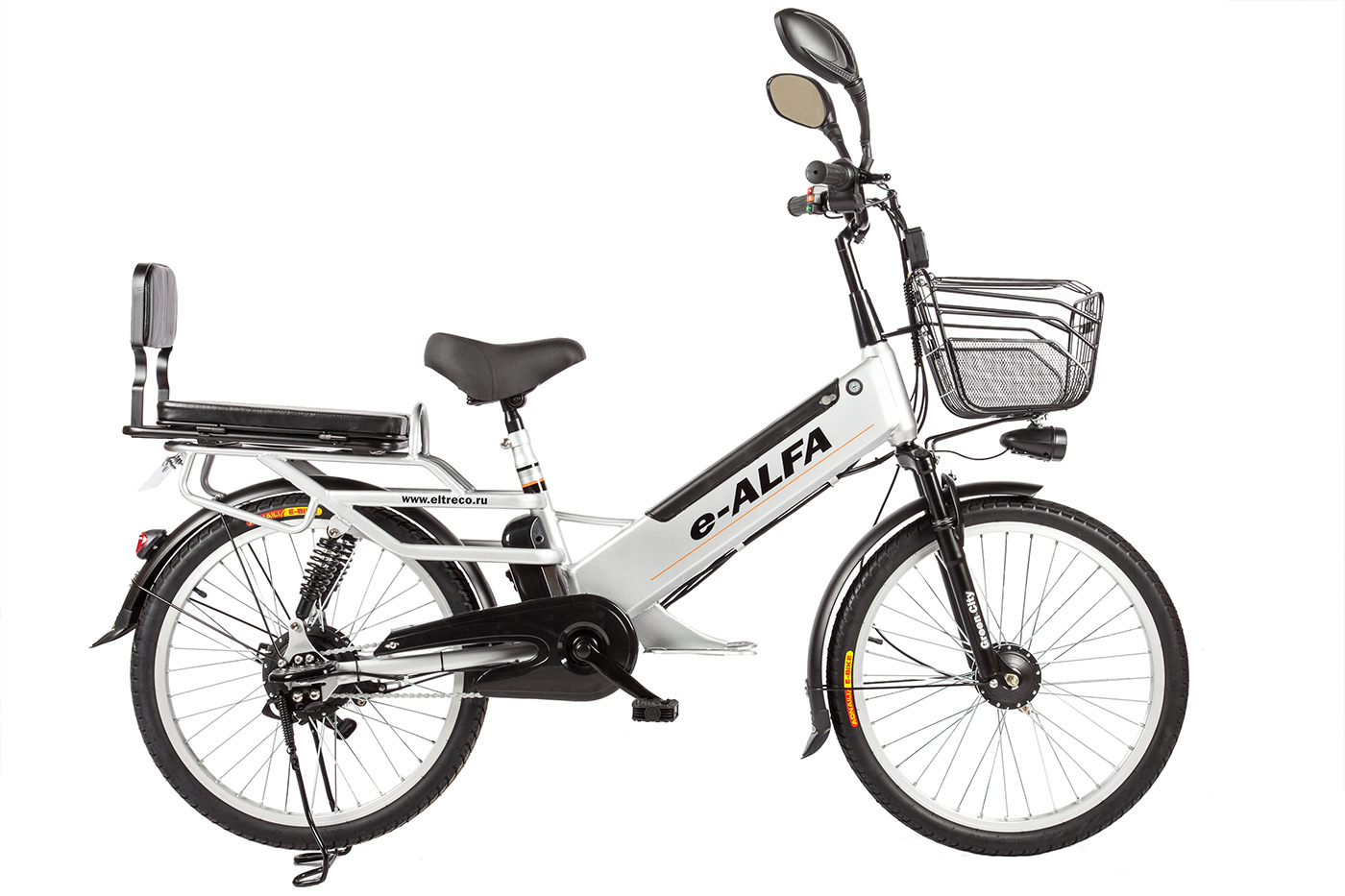 Бренд ELTRECO Модель E-Alfa GL Год 2019 Напряжение в 48 Материал рамы Алюминий (Alloy) Тип вилки Амортизационная (пружина) Диаметр колес 24" Уровень оборудования Любительский Количество скоростей 1 Пол/возраст Унисекс Скорость км/ч 25-30 Емкость аккумуляторной батареи 10Ah Пробег км до 50 Тормоз перед. барабанного типа Мощность двигателя вт 500 Сухой вес (кг) 39 Привод задний Грузоподъемность (кг) 130 Тормоз задний барабанного типа Тип передачи цепная Колёса 24" Подвеска Двухподвес -
